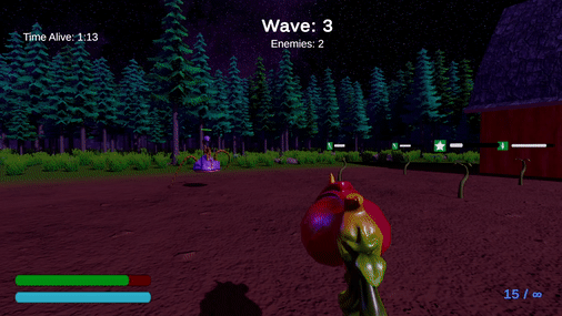 - Led a team of 7-Programmed the player movement- Programmed the FPS Mechanics- Programmed 9 Custom AI behaviors (3 Enemies each with 3 variants)- Programmed a Save System that saves stats after every run- Programmed the growing of the crops-Collaborated with the Designers on the look/feel of enemies-Programmed custom UI Behavior to differentiate Top Down/FPS