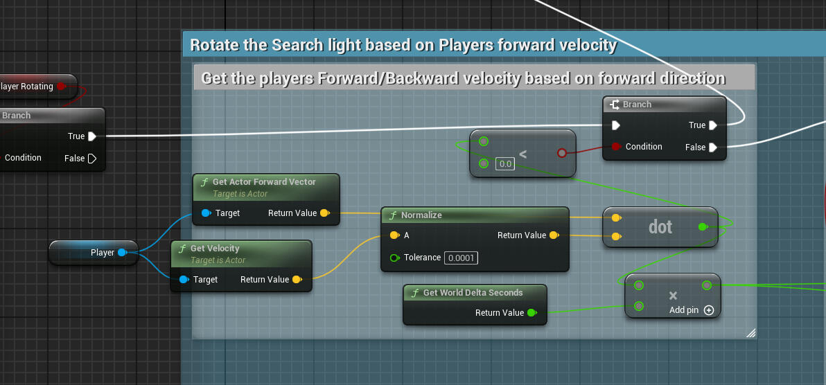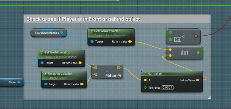 This was the final calculation I needed to. Once again using the Dot product, I got the forward vector of the light and compared it to the player. I then normalized it again so would get a 1 or a -1