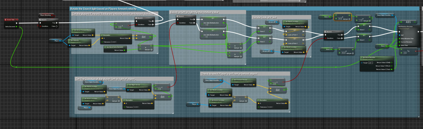 This was the final calculation I needed to. Once again using the Dot product, I got the forward vector of the light and compared it to the player. I then normalized it again so would get a 1 or a -1